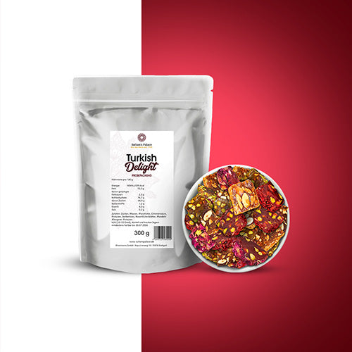 Unser feines Turkish Delight wird dich begeistern und in eine ganz besondere Geschmackswelt entführen. Die türkische Spezialität und Süßigkeit wird auch gerne Lokum genannt. Mit unserem attraktiven Probepacket kannst du die drei beliebtesten Sorten unseres Lokums zum Vorzugspreis testen. Im Turkish Delight Probepaket findest du jeweils 100 g der Sorten Turkish Delight Rosenblütenblätter, Engelshaar und Berberitzen.
