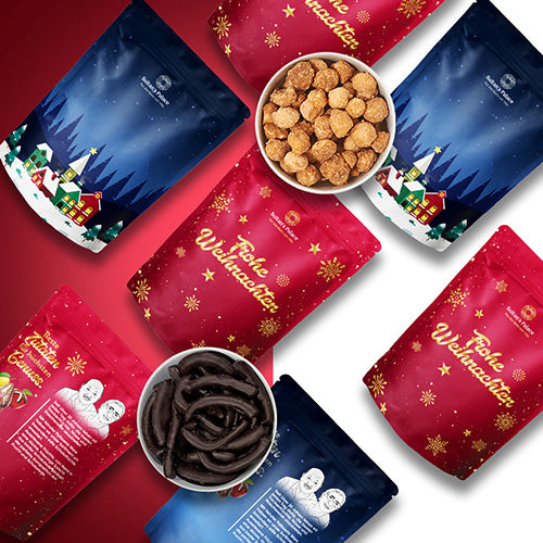 Weihnachtlicher Genuss der Extraklasse: mit unserem limitierten Winterzauber Bundle vereinen wir zwei ganz unterschiedliche, weihnachtliche Gnüsse, die sich perfekt vereinen. Beste, gebrannte Macadamianüsse, mit einem Hauch Honig und einer dünnen Zuckerschicht, entführen dich auf die schönsten Weihnachtsmärkte und sorgen sofort für festliche Stimmung. Als edle Ergänzung kommen unsere neuen Patisserie Kirschstäbchen in einer dünnen, knackigen Hülle aus bester, belgischer Zartbitterschookolade in diesem genussvollen Bundle zu dir. Stilvoll in weihnachtlichen Designs verpackt, sind sie das perfekte Geschenk und Mitbringsel in der Advents- und Weihnachtszeit. Verwöhne deine Liebsten oder gönne dir unser Winterzauber Genuss Bundle selbst und lass dich in die stimmungsvolle Vorweihnachtszeit entführen.